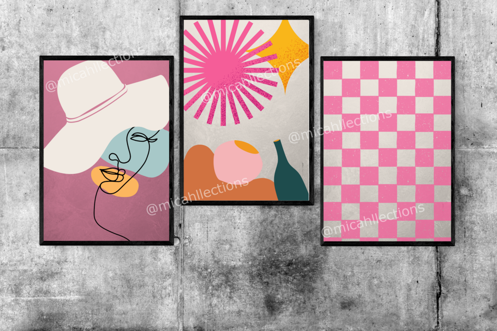 Pink Summer Wall Art, 3 Designs, Printable, Digital Download, Home Decor